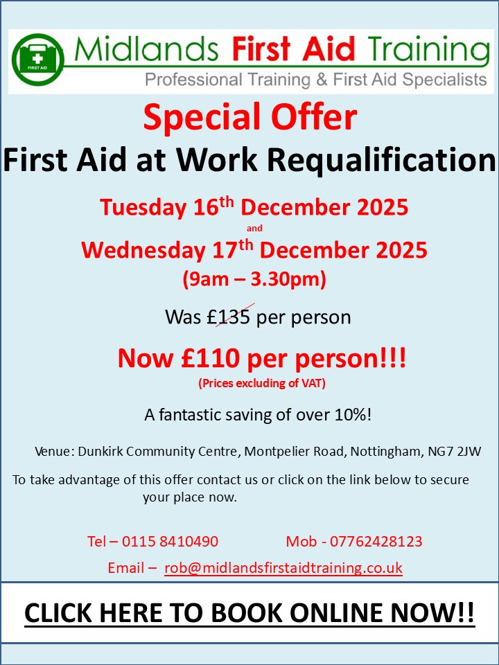 You could potentially save a life. Book your First Aid training, call: 0115 8410490