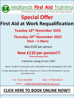 You could potentially save a life. Book your First Aid training, call: 0115 8410490